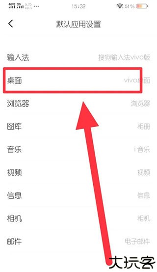 4、在列表中找到桌面应用,点击后选择魔秀桌面为默认项。
