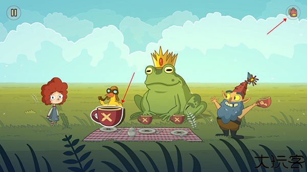 2、然后可以看到一个草坪上的青蛙,点击它,会出现小女孩。