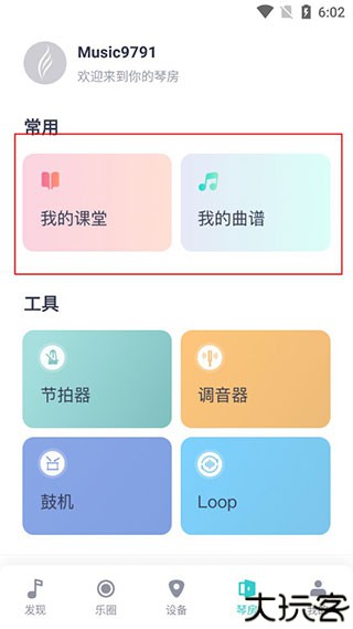 3、我们能在软件上进行练习,有我的课堂、我的曲谱。