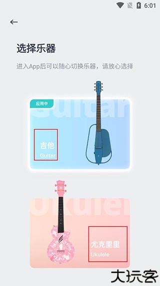 1、需要进行注册登录,根据自己的情况选择自己乐器。