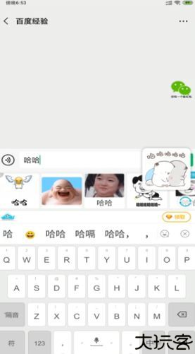 2、键入“哈哈”等常用词,即可触发表情推荐。