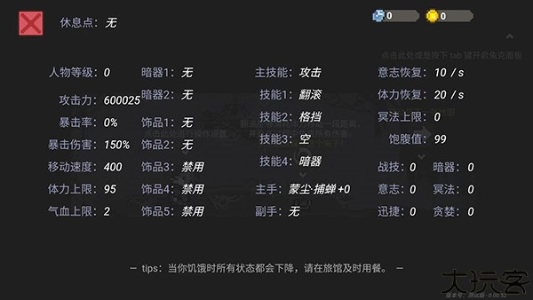 5、设置好操作环境和熟悉好基础操作后,点击右上角【三角形】图标即可开启图克面板,查看详细的角色属性,