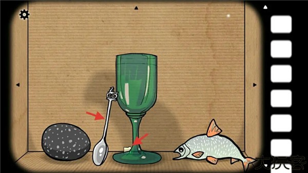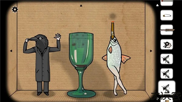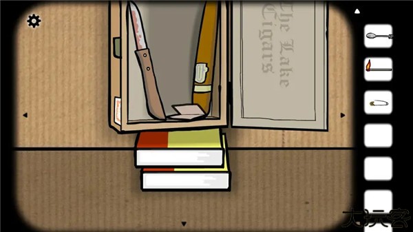 6、用钥匙打开上锁的盒子获得「雪茄」、「刀」和「纸条」将雪茄放在鱼的嘴里用火柴点燃。