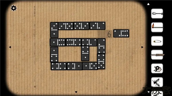 9、点击桥牌,根据规律摆放桥牌(第一次点进去没有数字6的路线提示,退出再点进去即可出现),完成后纸壁翘起一角,撕开获得提示。