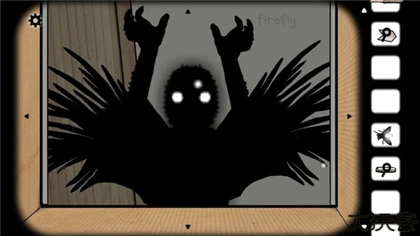 12、点击天花板,出现一个黑影在它抓住你之前点击苍蝇再点击黑影,连续三次后黑影消失出现黑色方块,点击黑色方块,游戏结束。