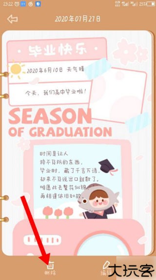 5、如果用户不想要该手账后,也可以选择删除。