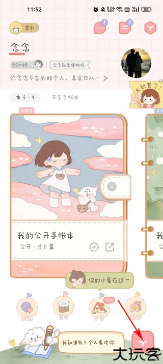 2、点击随后右下角的加号,准备添加新的手账。