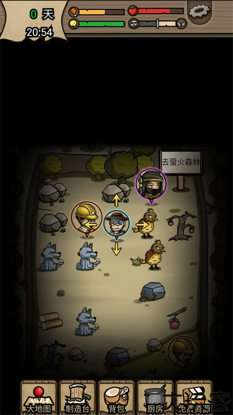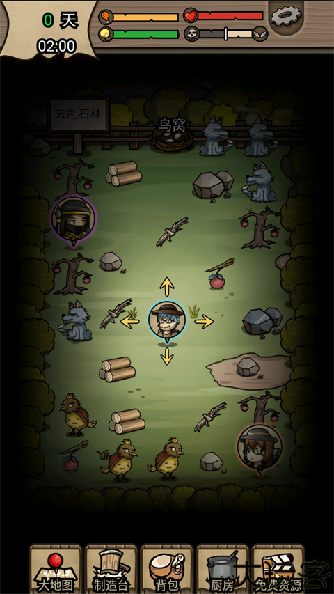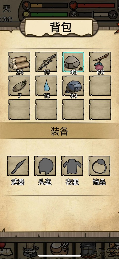 1、开局资源紧缺,先升级科技,进入前院拾取一切可用材料。