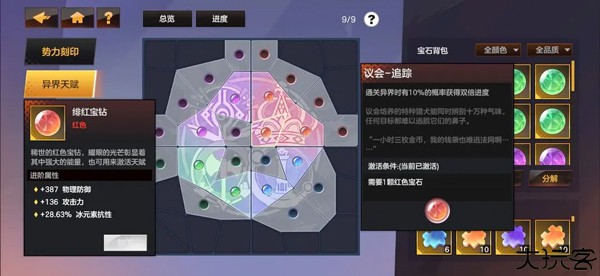 6、需要注意的是,各势力对于天赋宝石都有些特定的小要求,他们只会接受与自己势力徽章同色的宝石。