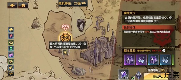 4、每级侵蚀危机中有三个侵蚀关卡,冒险者可以选择其中一个关卡进行挑战。每个关卡将随机出现侵蚀效果,会不同程度上增加关卡挑战的难度,侵蚀危机的难度越高,怪物额外掉率越高。