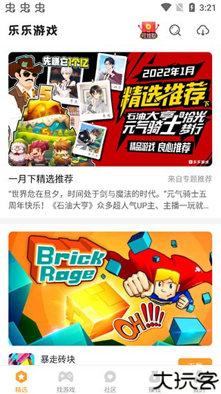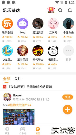 4、社区页面,用户可发一些自己对游戏的见解、游戏攻略、游戏资源分享等;