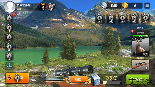 4、打中猎物要害的位置,系统.会根据精准度的高低来进行打分。