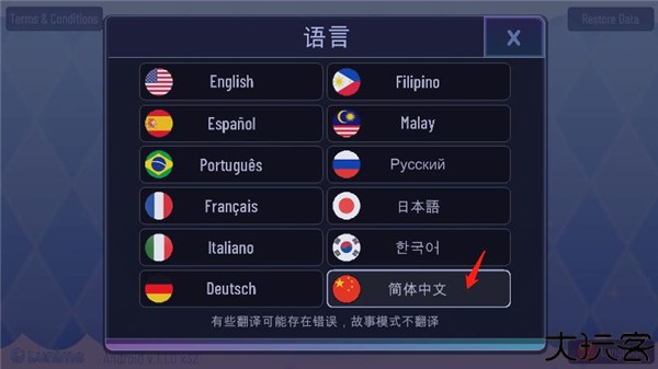 2、进入游戏主界面,如图所示,点击右小角的language按钮切换语言。
