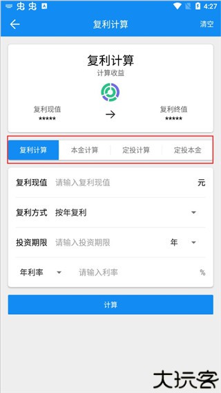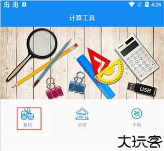 1、安装后进入首页,点击复利开始相关计算操作。