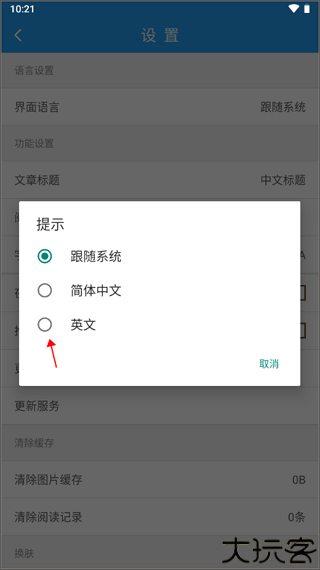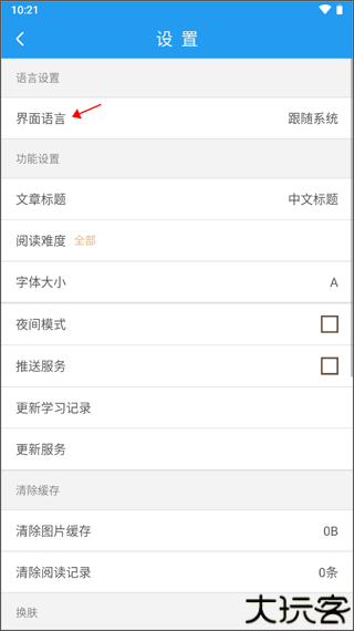 3、进入设置列表后,点击最上方的语言模式选项进入语言切换界面。