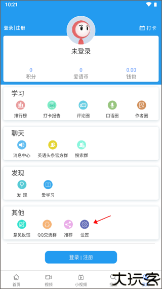 1、打开软件首页,点击底部菜单栏中的我的标签进入个人设置界面。