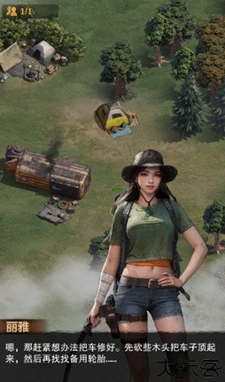 5、来到希望镇,点击地图上的树木可以砍树,点击废弃的建筑可以修复,点击垃圾可以探索。
