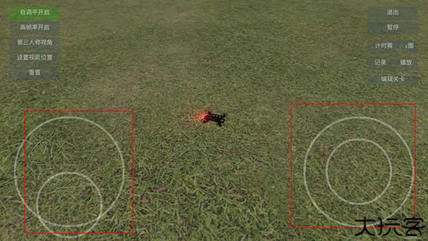 2、进入游戏后,画面上有左右两个按钮,左边可以控制无人机的加速方向,而右边可以控制无人机机头的方向。