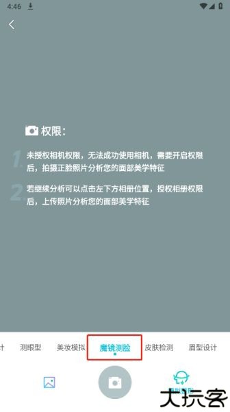 4、用户打开手机相机权限后,选择魔镜测脸即可测试。