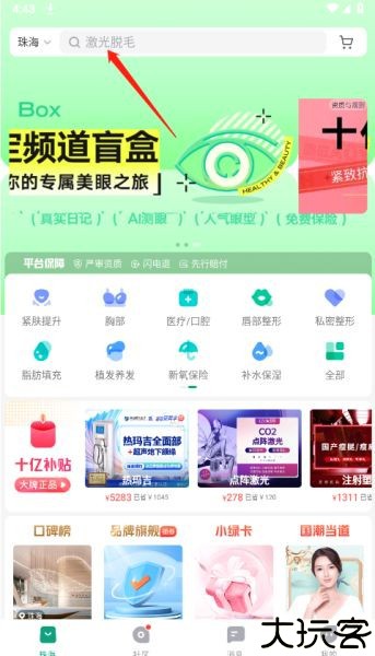 2、在搜索框输入新氧魔镜测脸型进行搜索。