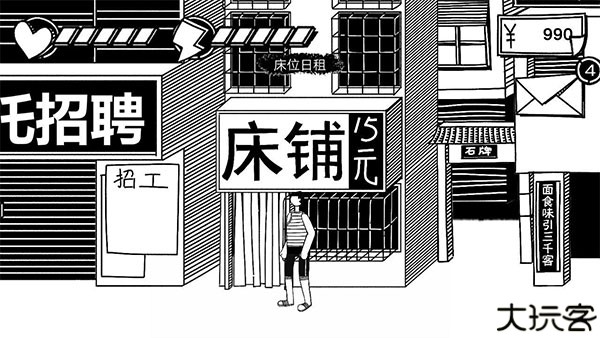 1、独特的黑白画风,模拟真实的城市生活,带玩家体验打工人的日常。