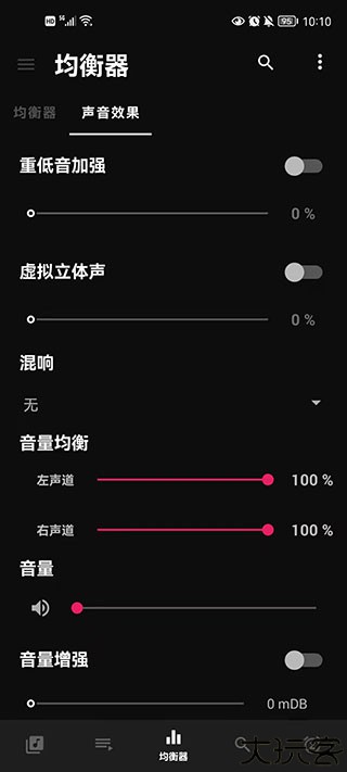 2、内置多频均衡器,自定义低频、混响等音效参数,听感全面提升。