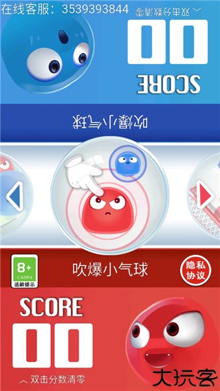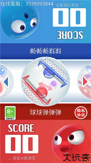 双人大比拼2手机版是双人同屏的休闲益智类的闯关小游戏。玩法很简单,两个玩家各自操控不同颜色的小球,一起拼手速、比反应,看谁点得快、分数高,过程中还要小心对方的攻击,抢先拿分才算赢。游戏内关卡超多,每关都有不同玩法和场景,不只是能对战,还有合作模式。双人大比拼2手机版的有些小游戏还挺考技巧的。与好友一起玩,或者可以随机匹配,随时随地来一局,玩个痛快。