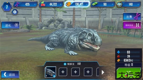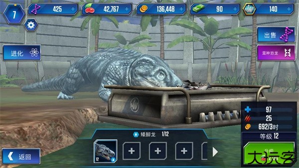 5、恐龙满级可合成进阶,消耗同种个体并提升上限与饱食值。