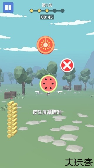 4、很多关卡中的水果和食物都是躲在掩体后面的,玩家不只是需要瞄准,还需要借助地形