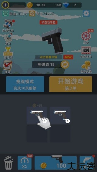 之后,游戏内的武器多达65种,越是高级的武器放置挂机的收益越高,想要获得这些武器的主要方式进行合成。