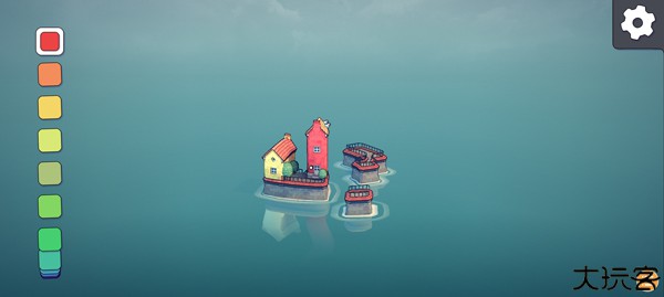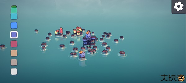 2、点击右上角的齿轮按钮以打开设置,点击新建后,玩家就可以在水面上建造房屋。