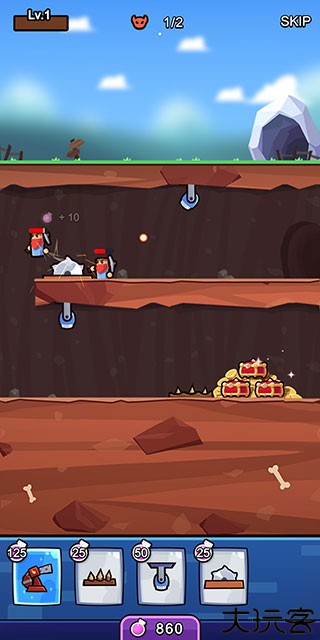 陷阱大师合并防御中文手机版,英文名为Trap Master,是采用2D横版视角的策略塔防类休闲放置手机游戏。陷阱大师合并防御中文手机版下载完成后,玩家需在地下通道中布置各种各样的防御塔,阻挡敌人掠夺核心宝藏。随着游戏关卡的不断推进,敌人强度也会不断提升,玩家需通过合成升级防御塔来增强战力。部分关卡还提供额外的防御配置,便于展开不一样的策略。