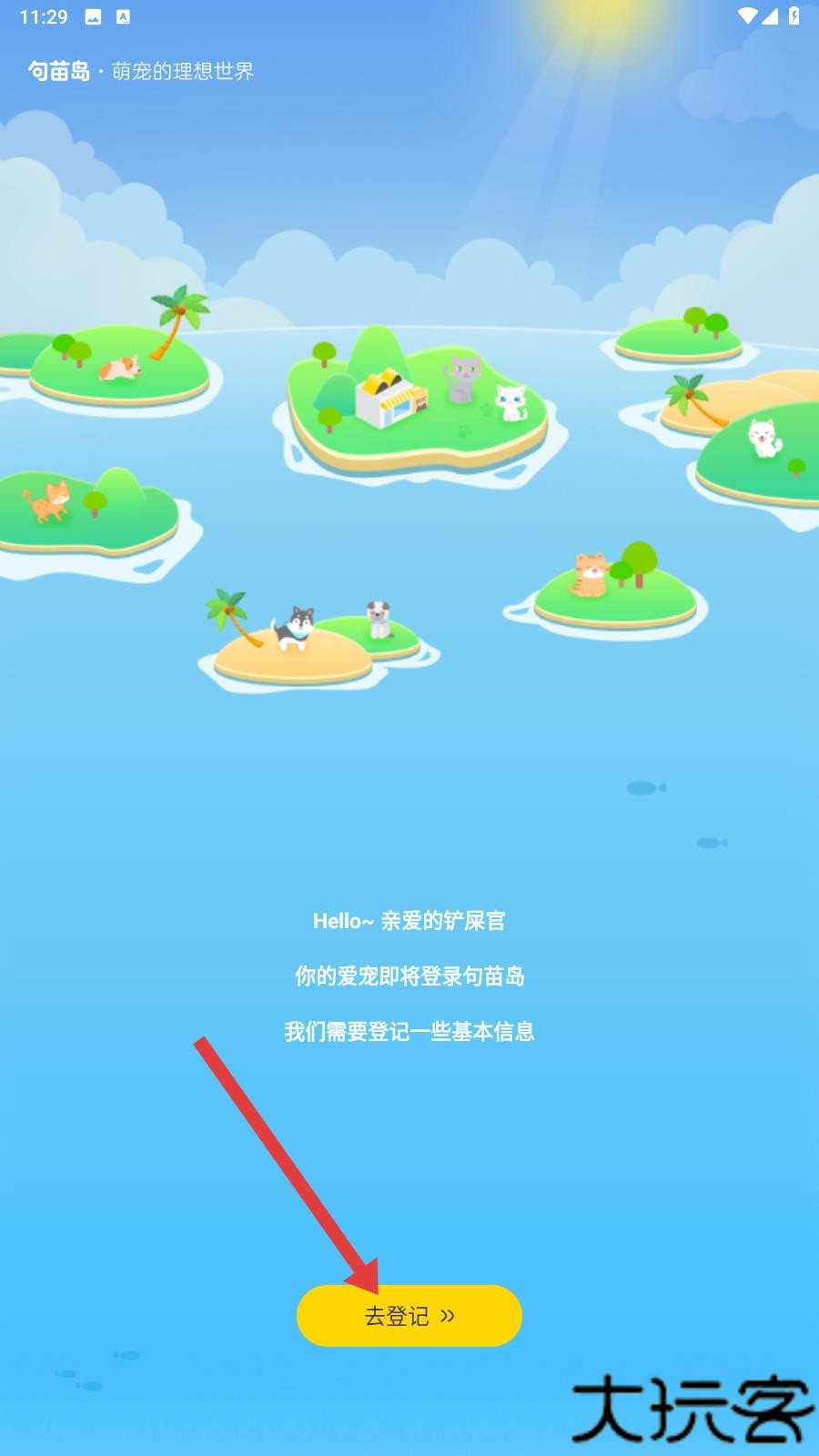 界面提示下方点击登记按钮,跳转至填写信息的界面。
