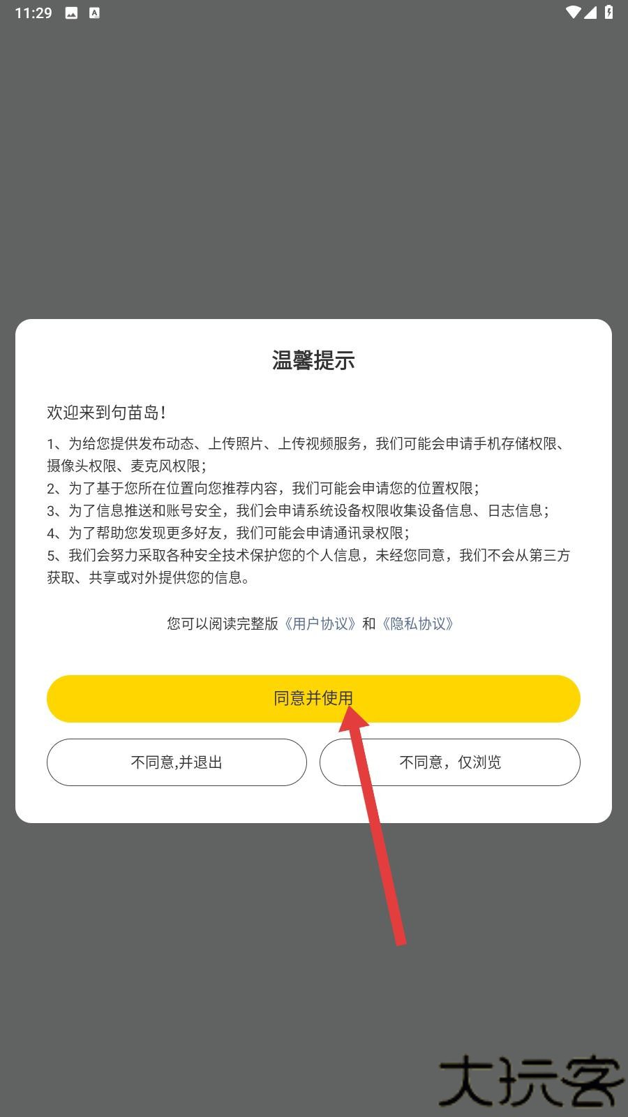 首次进入需阅读服务条款,确认同意后才能继续操作下一步。