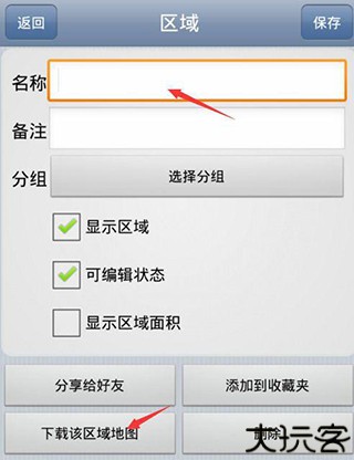 3、在“区域”和划线功能把从自己位置到要去地点的范围圈起来。