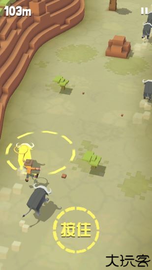 2、遇到新动物后,先骑着当前的动物跑到新动物身后,松开手指落在新动物的背上再按住屏幕不要松开。