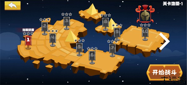 2、玩家选择关卡模式,在选关界面选择第一关,点击“开始战斗”进入游戏游玩;