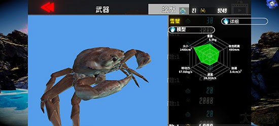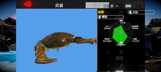 新手首选螃蟹,能力平均无短板,适合贴身战斗配强力装备使用。
