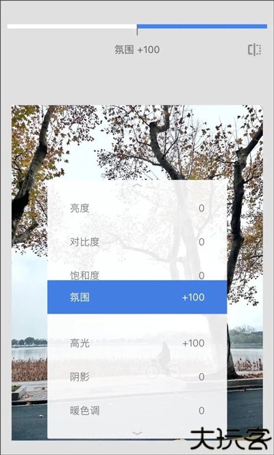 叠加“魅力光晕”,发光拉至40以上,饱和度和暖色完全清零营造清冷光感。