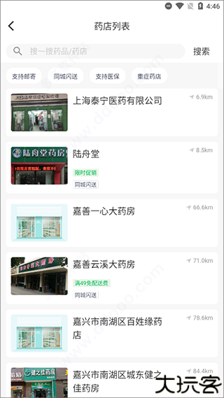4、同时看到附件所有的药店,进行选择购买药品等等。