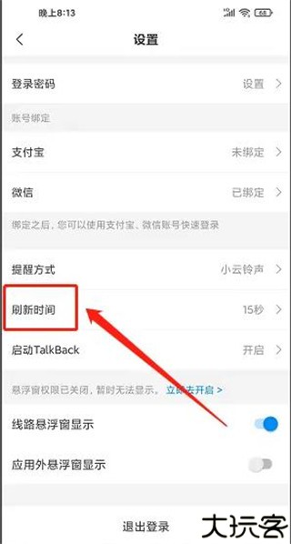 3、下滑找到刷新时间,点击进入刷新间隔时间设置页面。