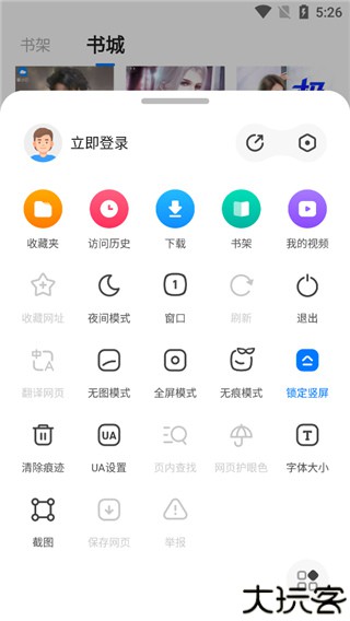 3、点击菜单后,里面为用户提供了丰富的功能,如收藏夹、历史、下载、书架、退出、无图/无痕模式、清除痕迹等等。