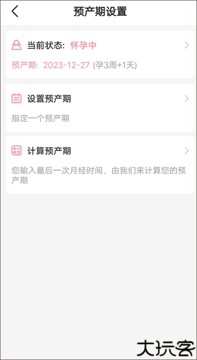 2、进入【怀孕中】的页面,用户可对预产期进行设置,以上的设置都完成就可正式进入主页面里。