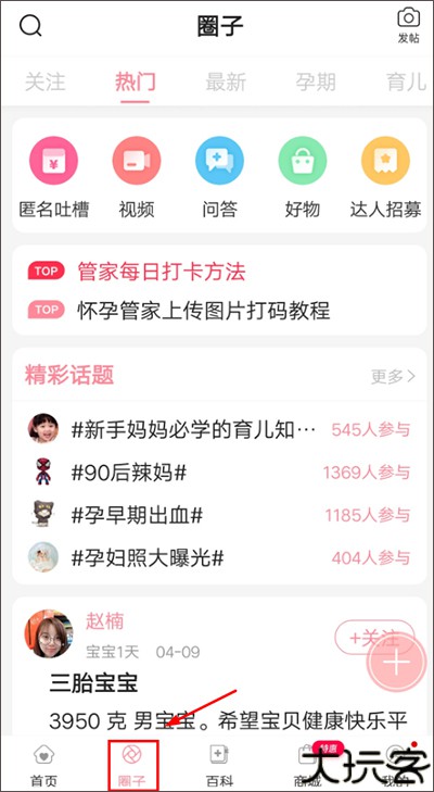 5、点击app的【圈子】里,用户也可与其他人一起分享交流。,从中学习海量有关怀孕、备孕、育儿等全方位母婴孕育的经验与知识。