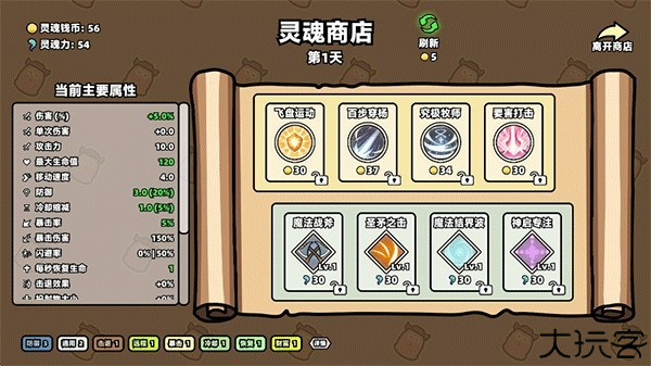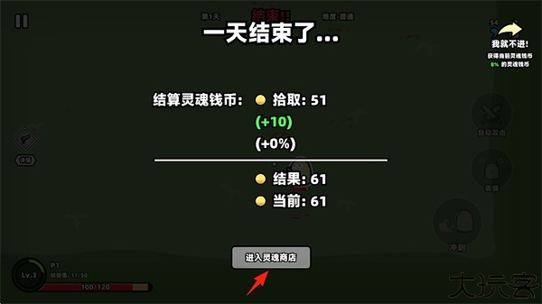 11、在灵魂商店使用灵魂钱币提升补充你的伤害、生命值、防御等属性。