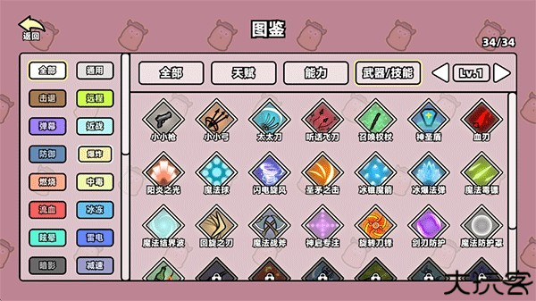 4、在图鉴页面中您可以查看浏览全部的天赋、能力、武器/技能等,助你快速了解游戏内容,接着返回后点击右上角下一步。