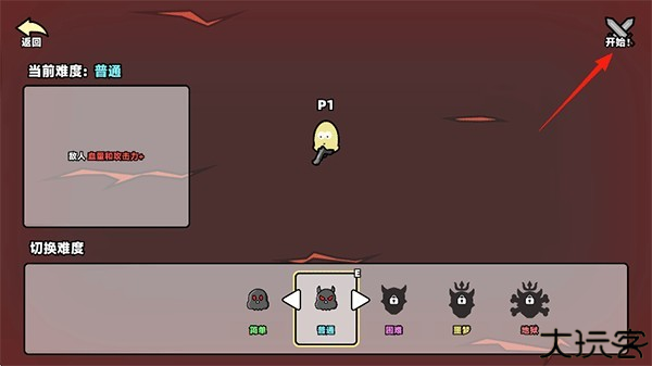 6、切换难度,点击右上角开始。