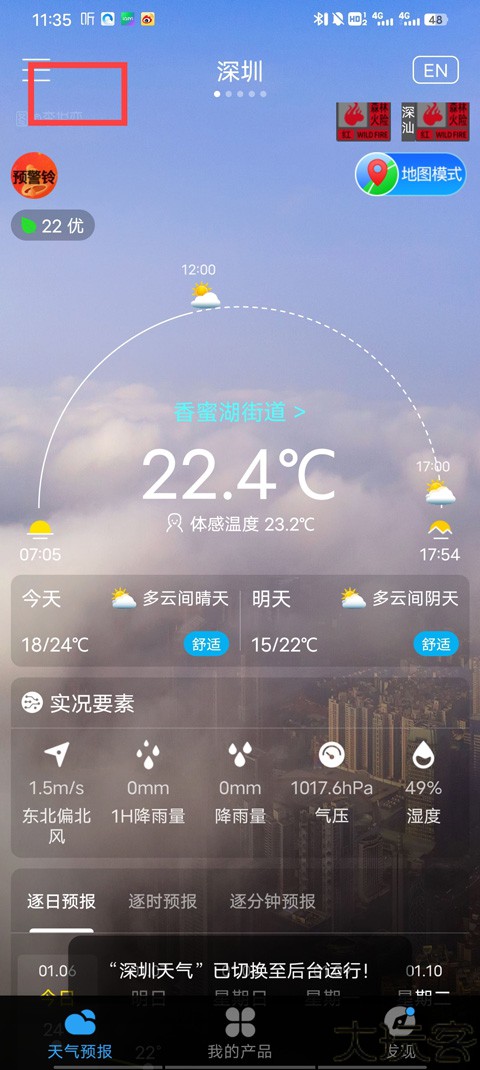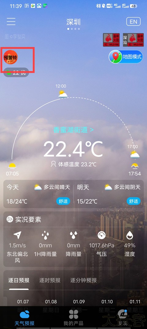 深圳天气预报手机版由市气象局官方推出,专为本地市民提供权威、精准的气象服务。涵盖台风路径、雷达图、卫星云图等专业产品,还支持地铁天气、分区预报与环境气象等高精度信息。深圳天气预报手机版下载安装后,用户可拍摄实景上传至“大实景”模块,记录并分享当下天气状态。通过地图直观查看各区域气象变化,让天气信息更具互动性与仪式感,贴近生活每一刻。