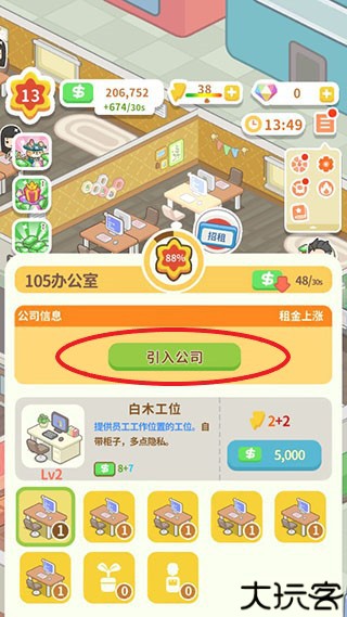 玩家在装修完房间之后就可以进行房间的出租,点击引入公司,然后签订合同就可以通过收取租金来赚钱啦。