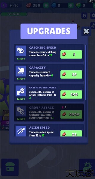 5、通过消耗获取的食物可以增强自己的各项能力。
